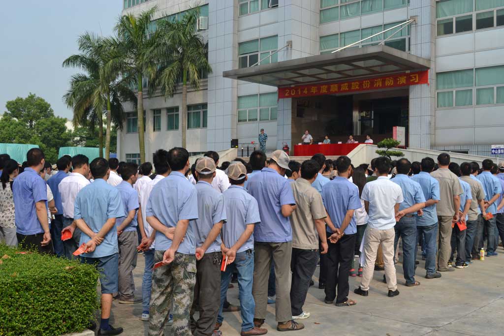 順威股份董事會秘書/財務(wù)總監(jiān)曹惠娟女士、副總裁/空調(diào)風葉研發(fā)中心總監(jiān)楊昕先生、順威股份綜合管理中心總監(jiān)陳詠先生、順德塑料分公司總經(jīng)理景新兵先生等公司高層領(lǐng)導,與來自順威股份公司各職能部門、風葉事業(yè)部、順威股份順德塑料分公司、順威股份順德模具分公司及中山賽特的全體員工參加了公司年度消防演習。