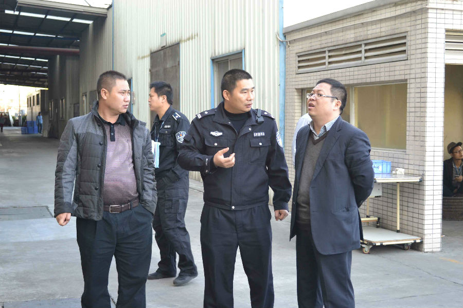 上午9:30,鄧警長一行先后來到順德塑料分公司一車間、二車間,以及順德模具分公司生產(chǎn)車間,認真檢驗察看了公司的消防器材和消防安全通道,并詳細詢問了公司消防安全的開展情況。