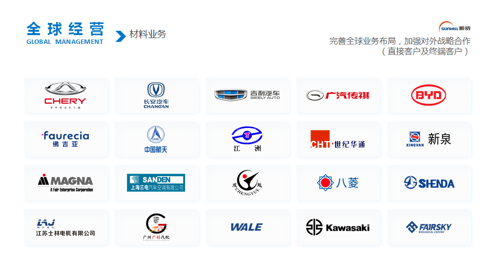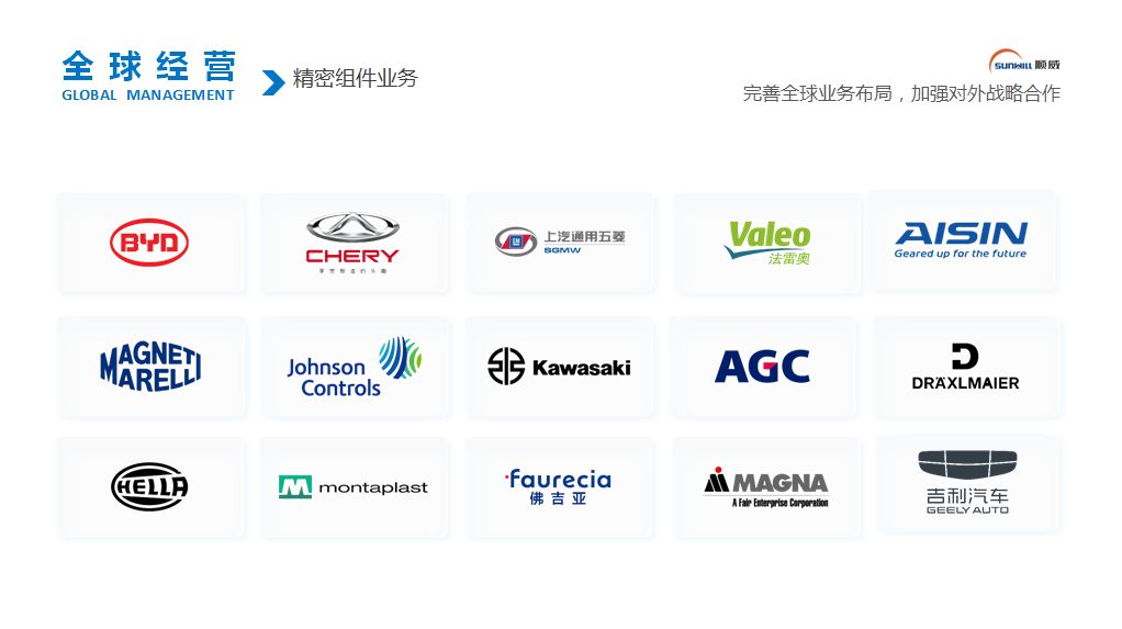 作為“風(fēng)葉+汽車”雙引擎戰(zhàn)略驅(qū)動(dòng)的全球化智能制造產(chǎn)業(yè)集團(tuán),公司擁有23家分子公司,4個(gè)研發(fā)實(shí)驗(yàn)中心,3個(gè)省級(jí)技術(shù)中心,600多項(xiàng)專利,下轄8家省級(jí)“專精特新”企業(yè),13個(gè)國內(nèi)外生產(chǎn)基地,總生產(chǎn)面積近40萬㎡,年產(chǎn)能超2億件,具備全球化、多基地配套運(yùn)營能力。未來,順威股份將繼續(xù)圍繞“風(fēng)葉+汽車”產(chǎn)業(yè)發(fā)展定位,積極布局高端制造業(yè)、新能源汽車零部件行業(yè),提升新質(zhì)生產(chǎn)力,為粵港澳大灣區(qū)培育壯大先進(jìn)制造業(yè)集群貢獻(xiàn)力量。