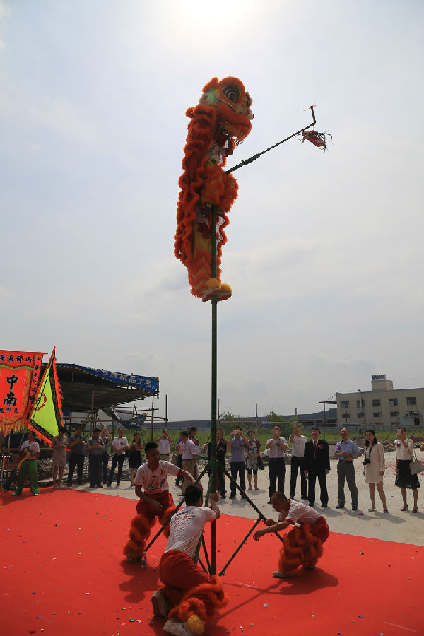 9:31分,鞭炮聲響起,車間機臺轟鳴,智能科技及三月雨公司新廠區(qū)正式“踏上征途”。隨后,鑼鼓喧天,醒獅助威。兩只醒獅以活靈活現(xiàn)的雄獅之姿表演了“板凳取財”及“高桿取財”兩個彩頭節(jié)目,為新廠區(qū)帶來生氣與喜慶。10點整,喬遷開工儀式圓滿結(jié)束。